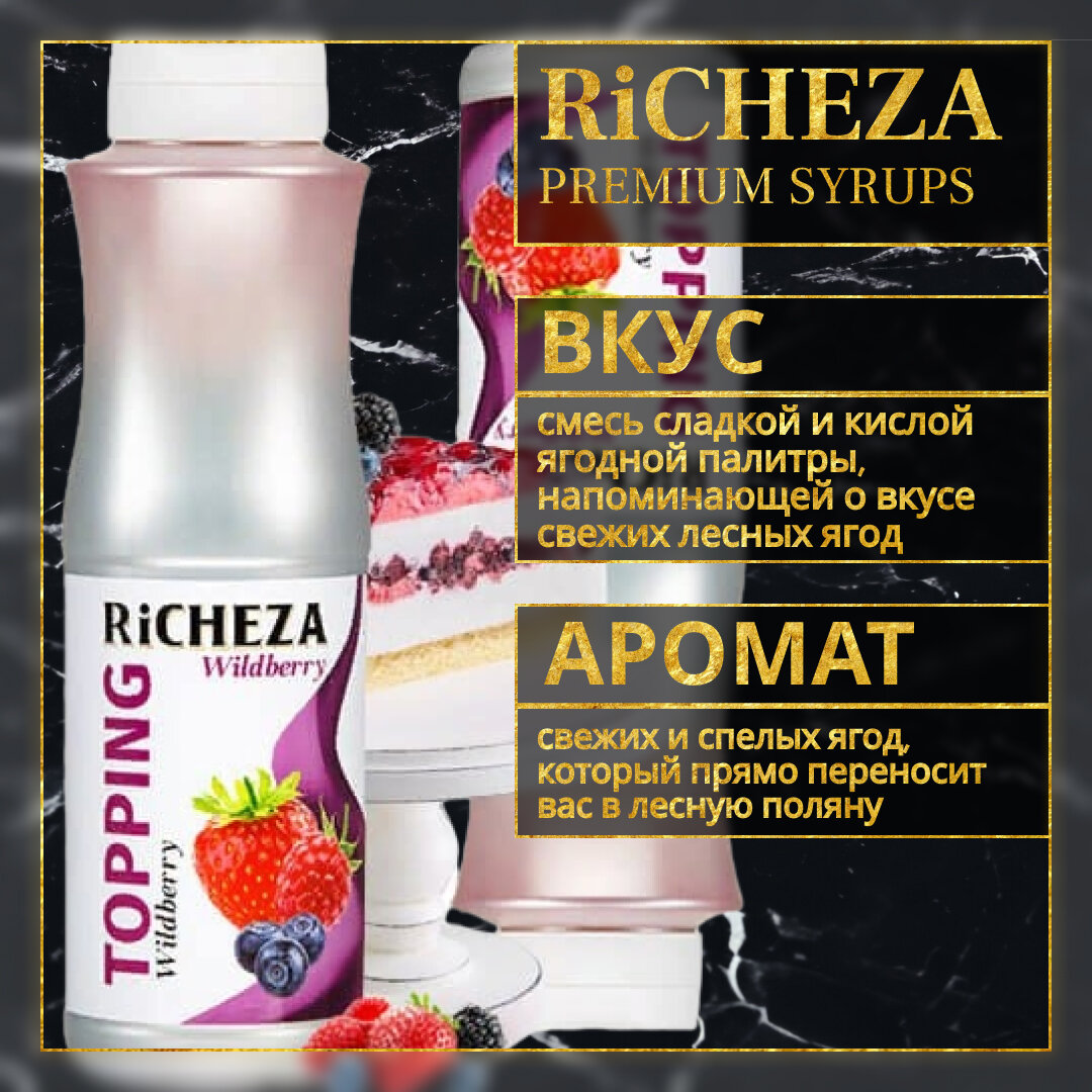 Топпинг десертный Richeza Ричеза Лесные Ягоды для кофе, мороженого, выпечки, десертов и коктейлей, 1 кг. информация: