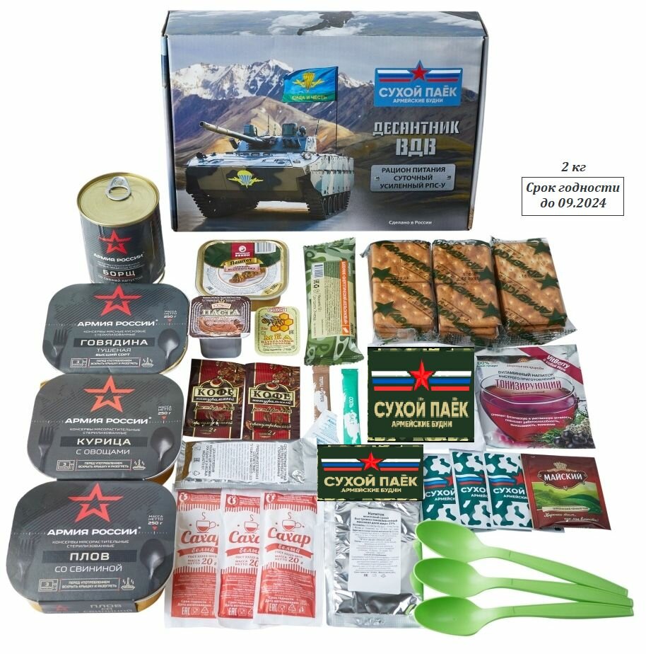10 цен на Сухой паёк «ВДВ десантник» Армейские Будни Рацион Питания на 1.5 суток Усиленный (РПС-У)