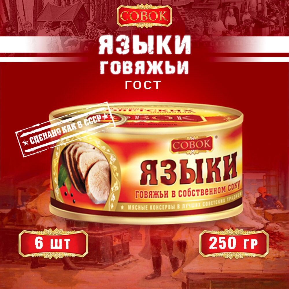 10 цен на Языки говяжьи в собственном соку, ГОСТ, Совок, 6 шт. по 250 г