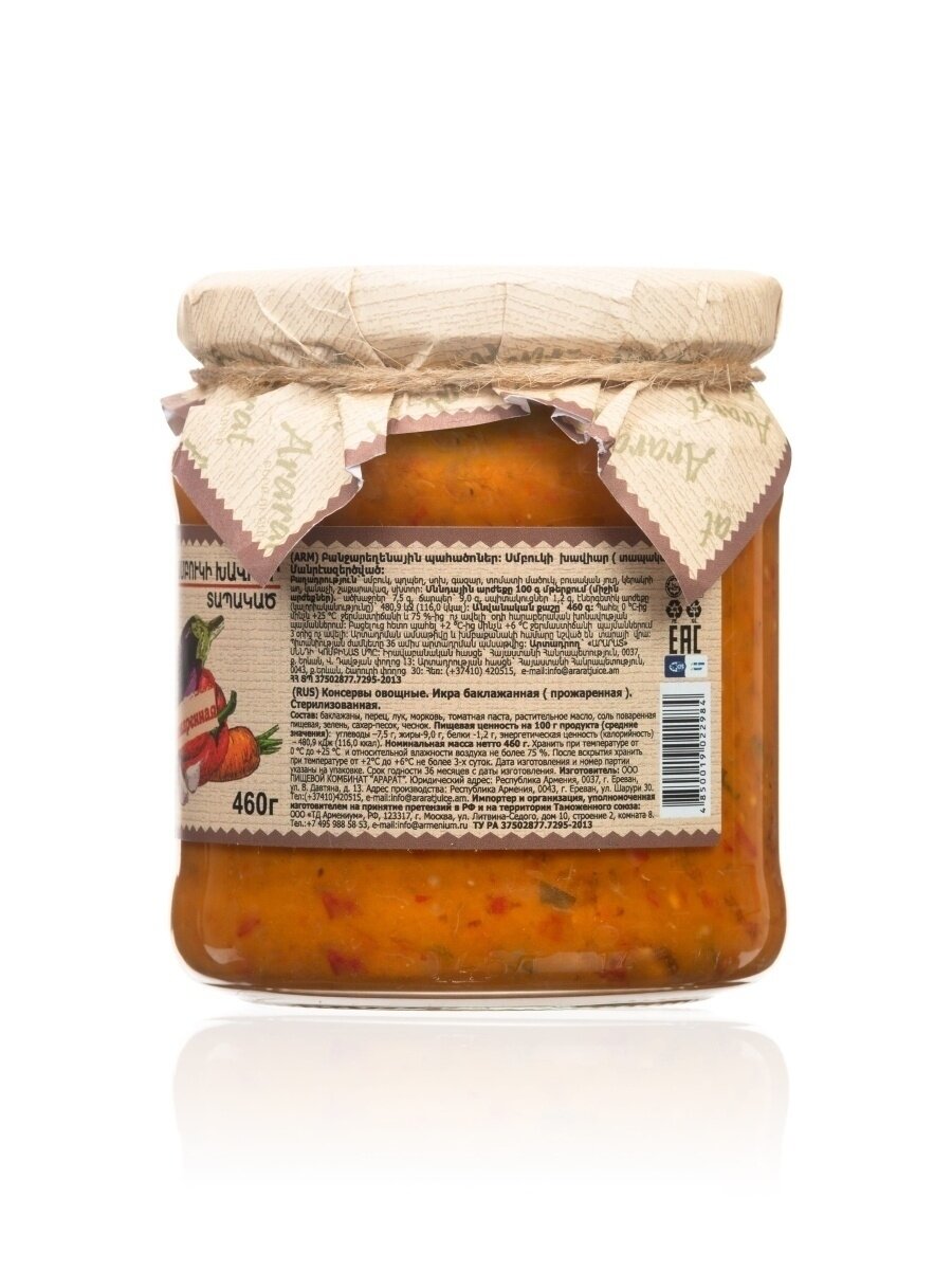 Икра баклажанная на гриле "ARARAT" 460 ГР информация:
