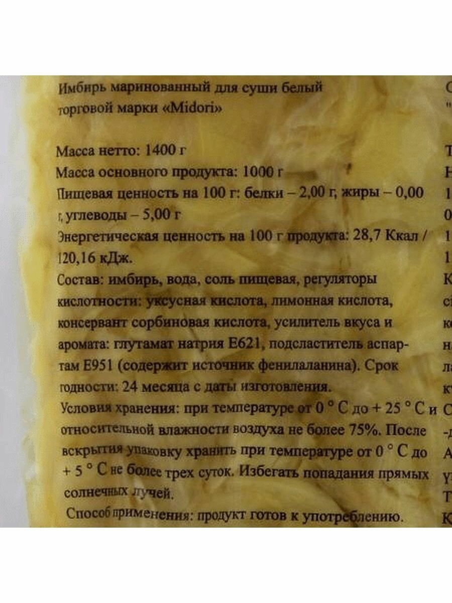Три-С Имбирь маринованный белый 1кг информация: