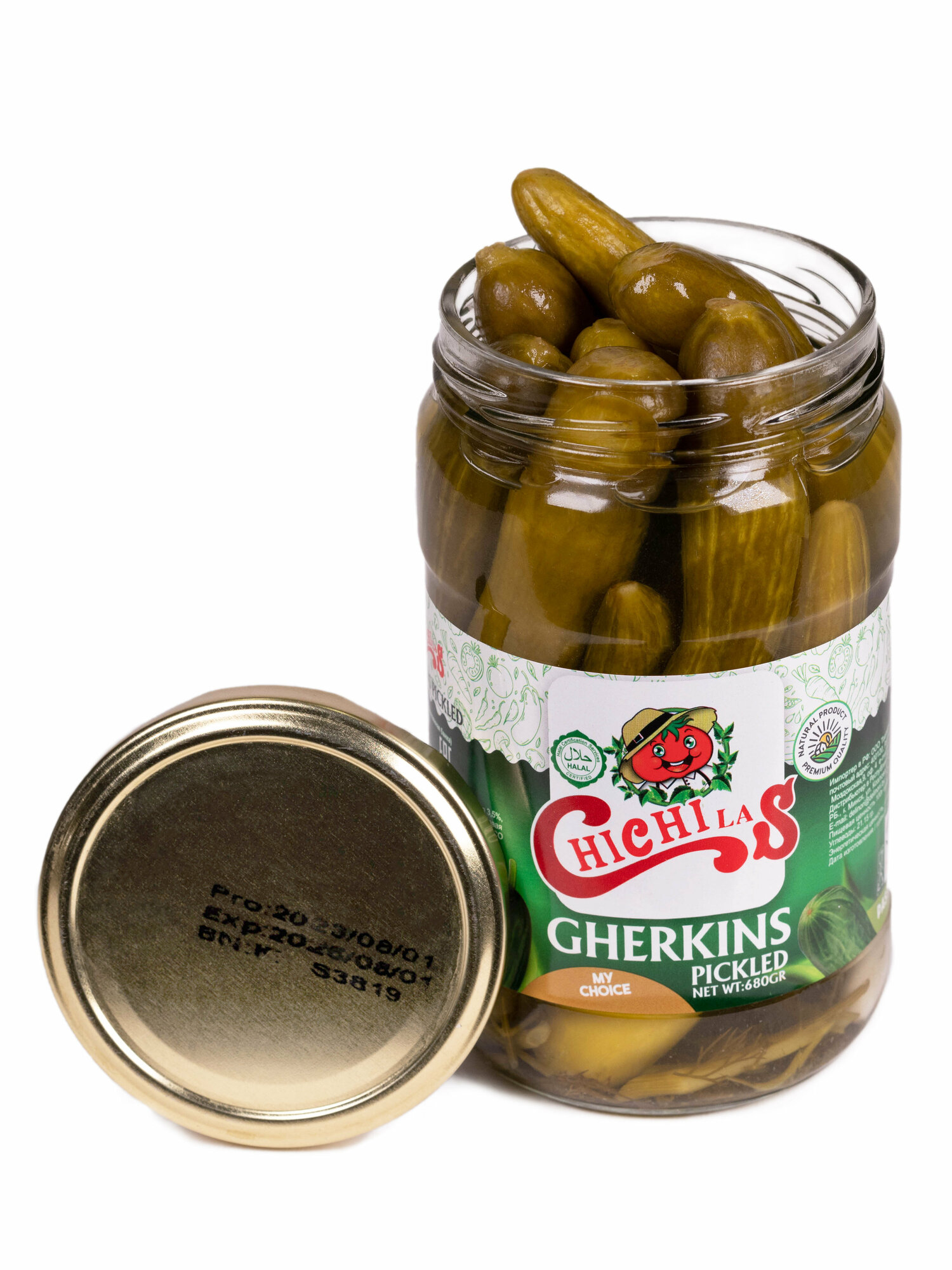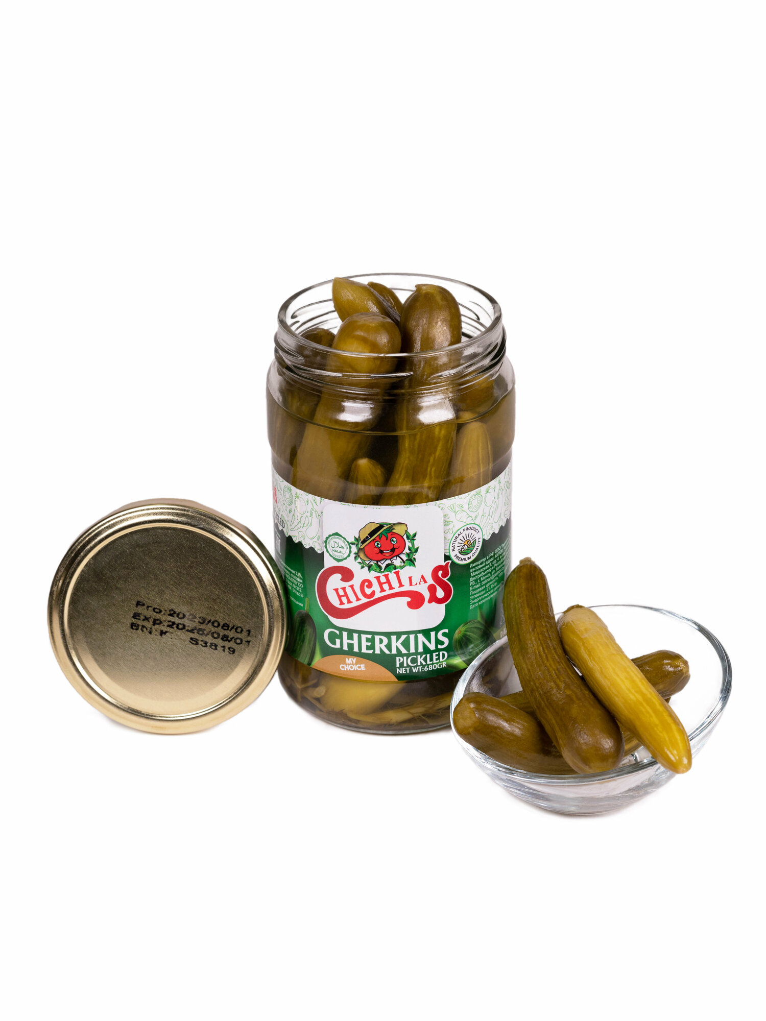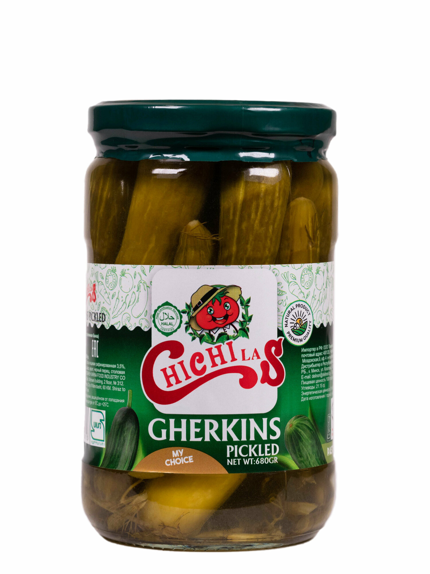 Огурцы маринованные ChiChiLas, 1 шт., 680 г, стеклянная банка информация: