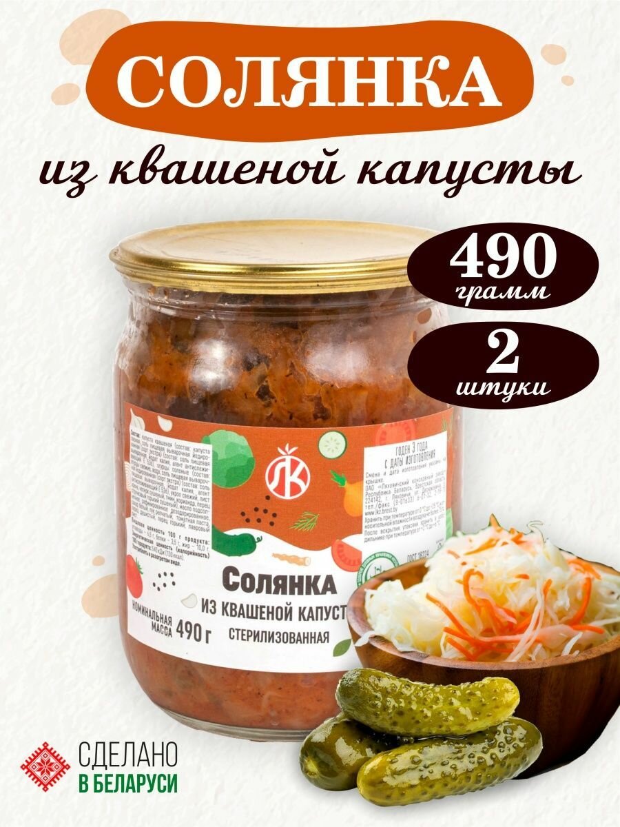 Солянка из квашеной капусты Ляховичский КЗ, 2 банки по 490 грамм информация: