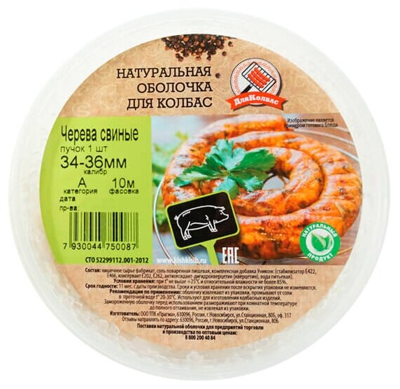 Свиные черева (кишки), 34-36 мм, 10 метров, натуральная оболочка для колбас информация: