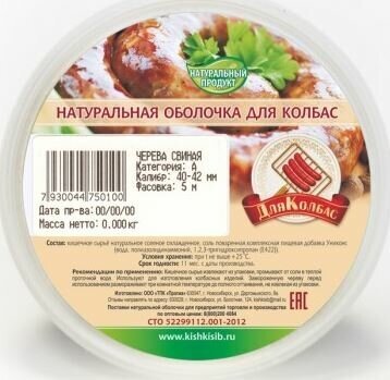 Свиные черева (кишки), 40-42 мм, 5 метров, натуральная оболочка для колбас информация:
