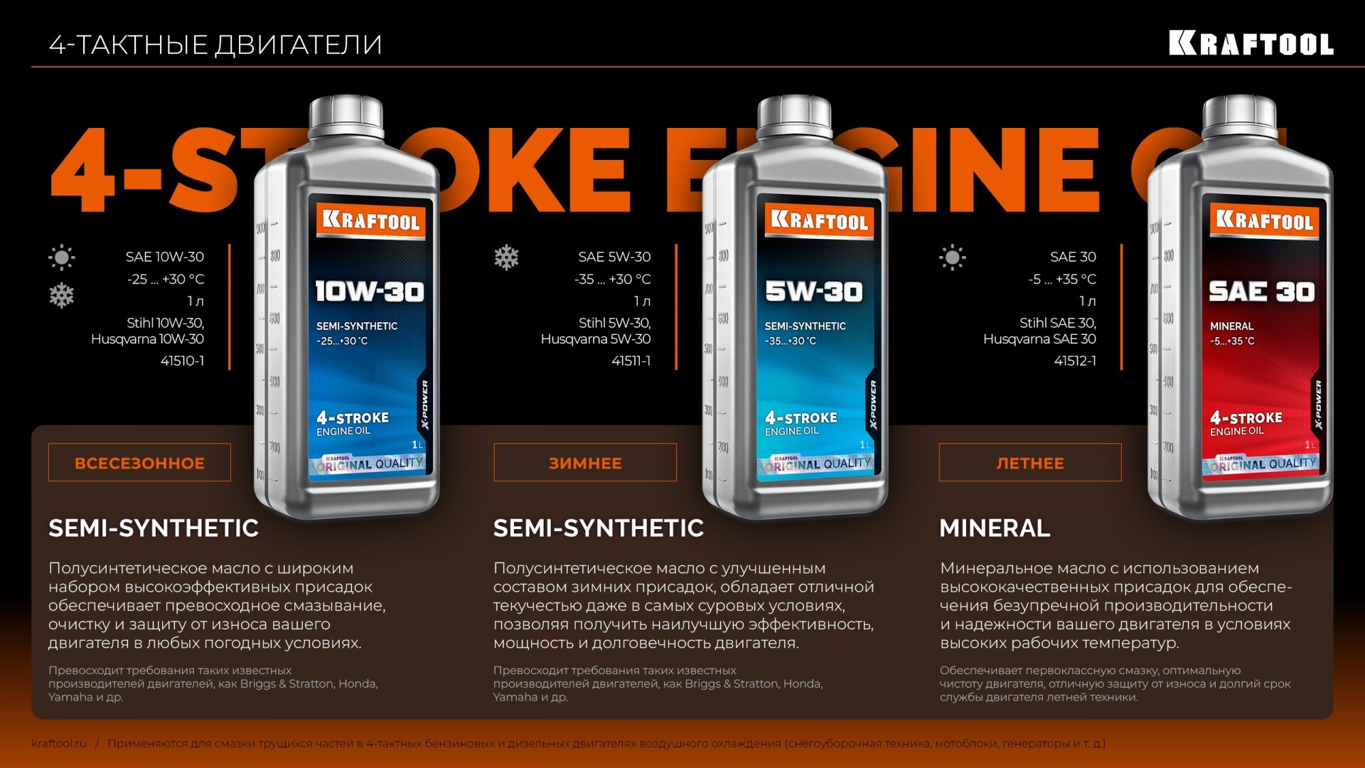 KRAFTOOL SAE 30, 1 л, минеральное масло для 4-тактных двигателей (41512-1) информация: