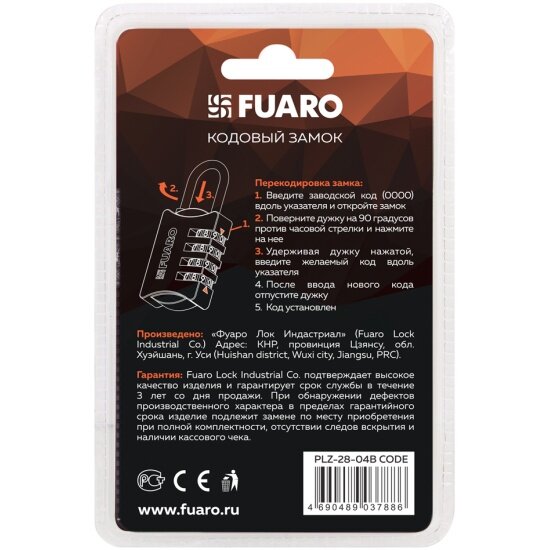 Замок кодовый Fuaro (Фуаро) PLZ-28-04S CODE блистер