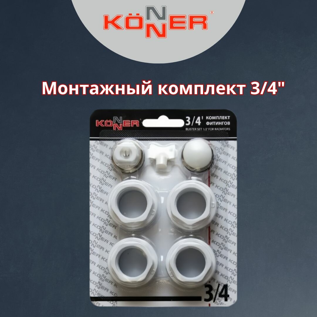 10 цен на Монтажный комплект для радиатора Набор фитингов без кронштейнов 3/4" Konner