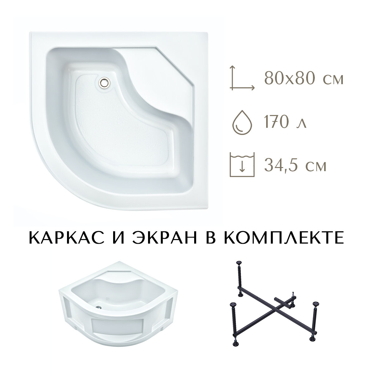Душевой поддон акриловый глубокий (комплект с каркасом и экраном) Капрера 80*80 LESAN информация: