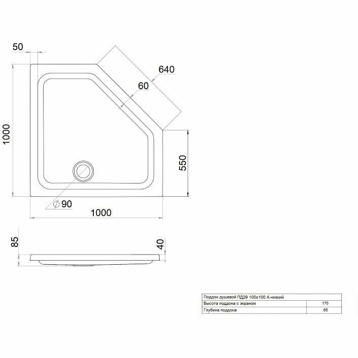 Душевой поддон Тритон ПД29 низкий пятиугольный 1000х1000х170 мм белый (Щ0000056825) информация: