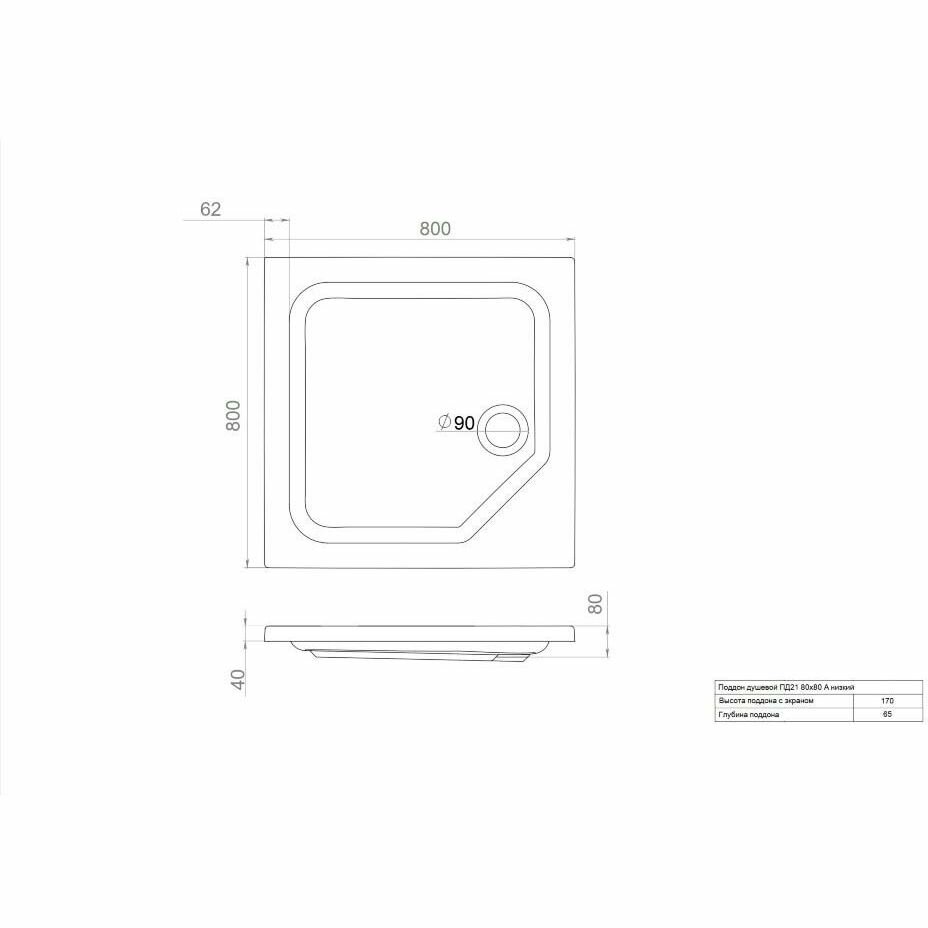 Душевой поддон Тритон ПД21 ДК низкий 800х800х170 мм белый (Щ0000038719) информация: