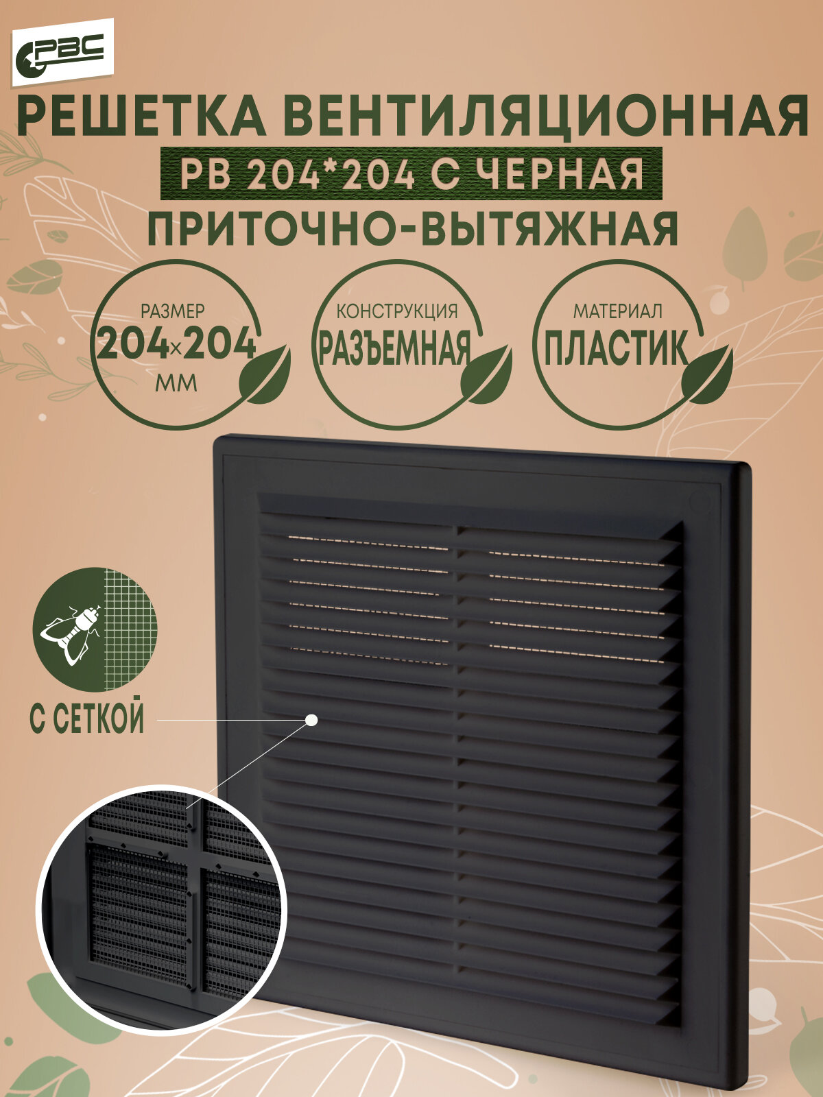Решетка вентиляционная с сеткой черная приточно-вытяжная РВ 204х204 информация:
