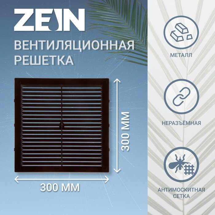 ZEIN Решетка вентиляционная ZEIN Люкс Л300КР, 300 x 300 мм, с сеткой, неразъемная коричневая информация: