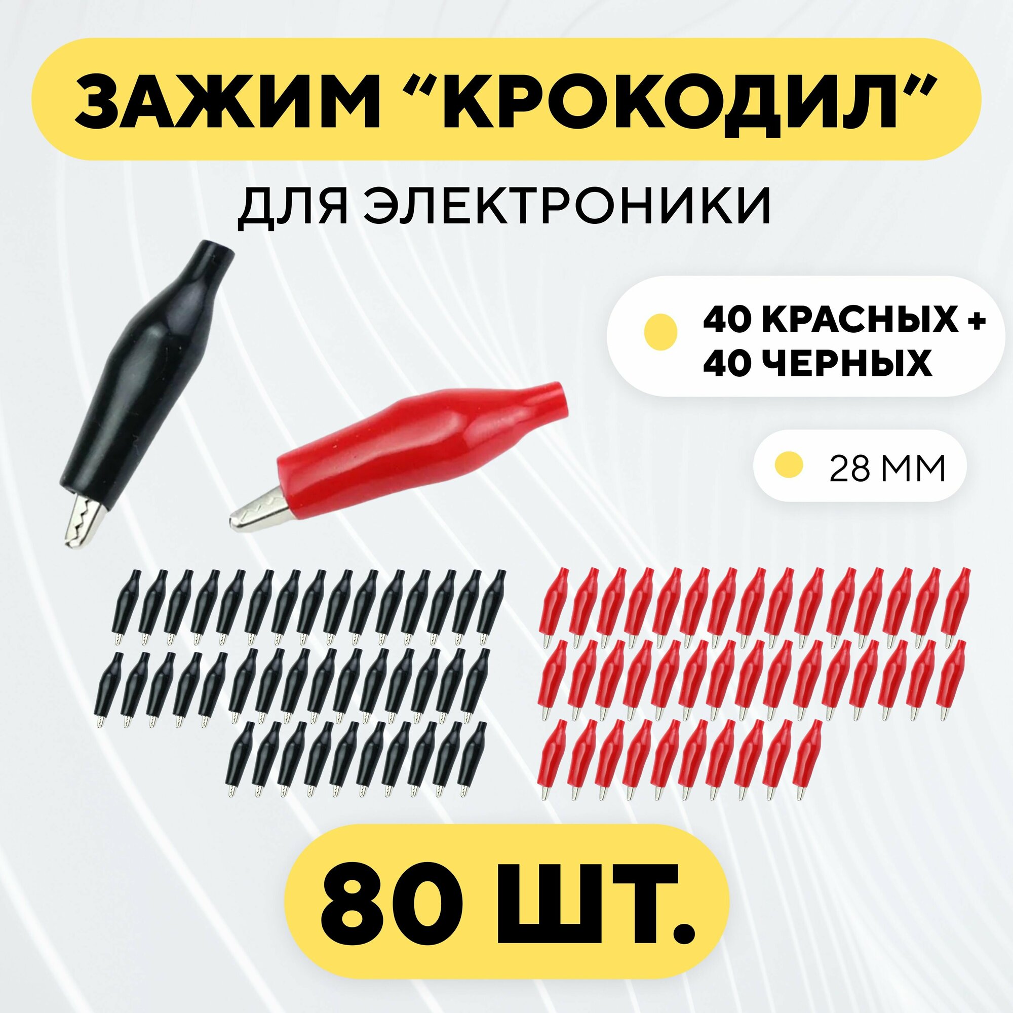 Набор крокодильчиков 28 мм 40 красных + 40 черных (80 штук) информация: