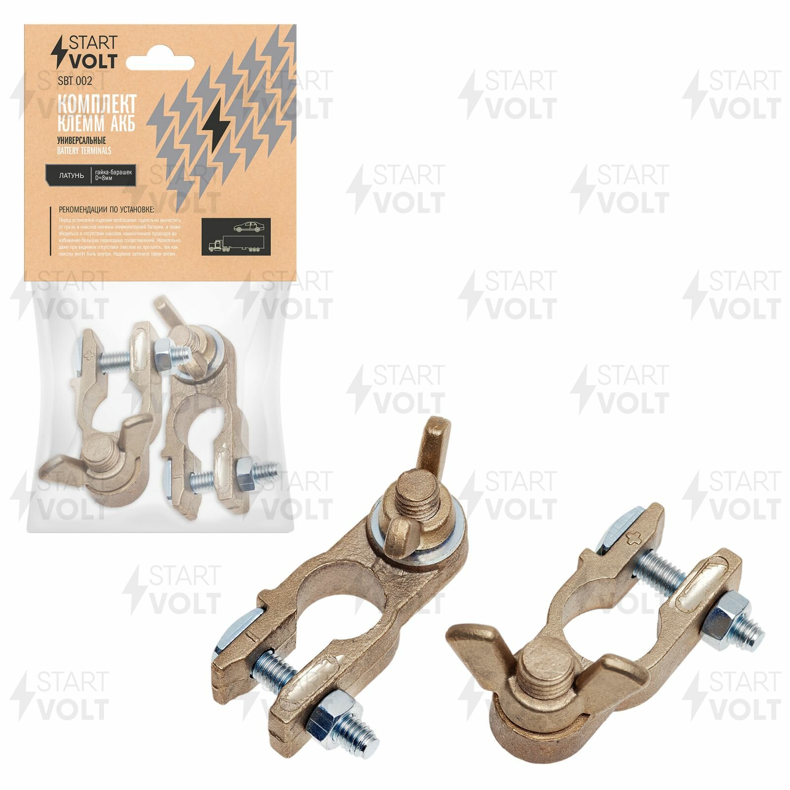 Клеммы АКБ в комплекте латунь, гайка-барашек 8мм SBT 002 StartVolt информация: