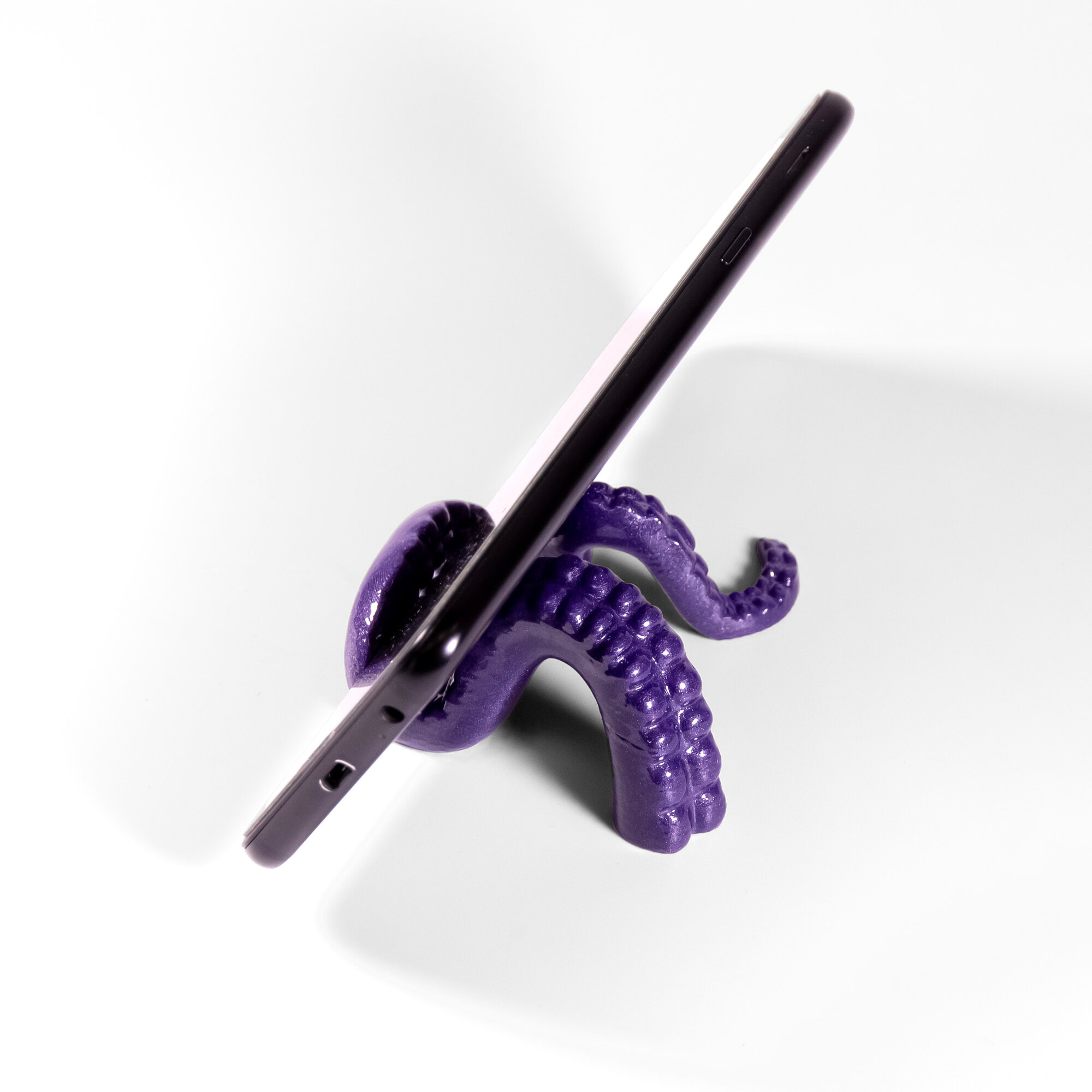 Держатель телефона в виде щупальца осьминога, фиолетовая информация: