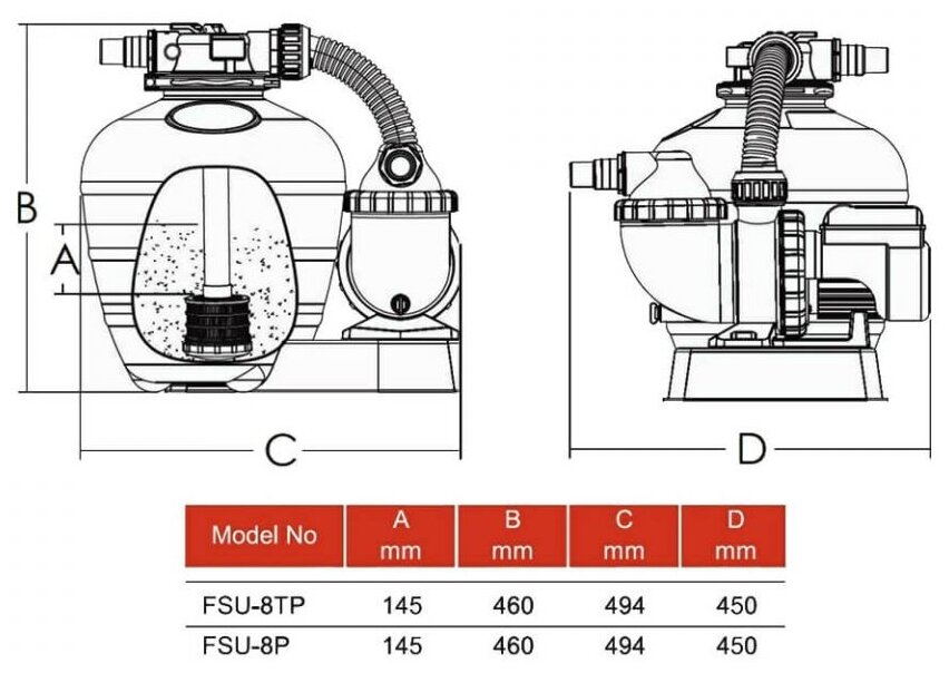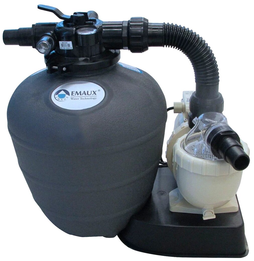 | Комплектация | Бочка фильтра (330 мм) (верхнее подсоединение вентиля) Вентиль четырехпозиционный (верхний 1 1/2”) Emaux Манометр- Насос Emaux AMU020TP с таймером Установочная платформа Шланг для соединения фильтра с насосом с резьбовыми муфтами Переходник для подключения гибкого шланга д. 32/38мм (3 шт.) |