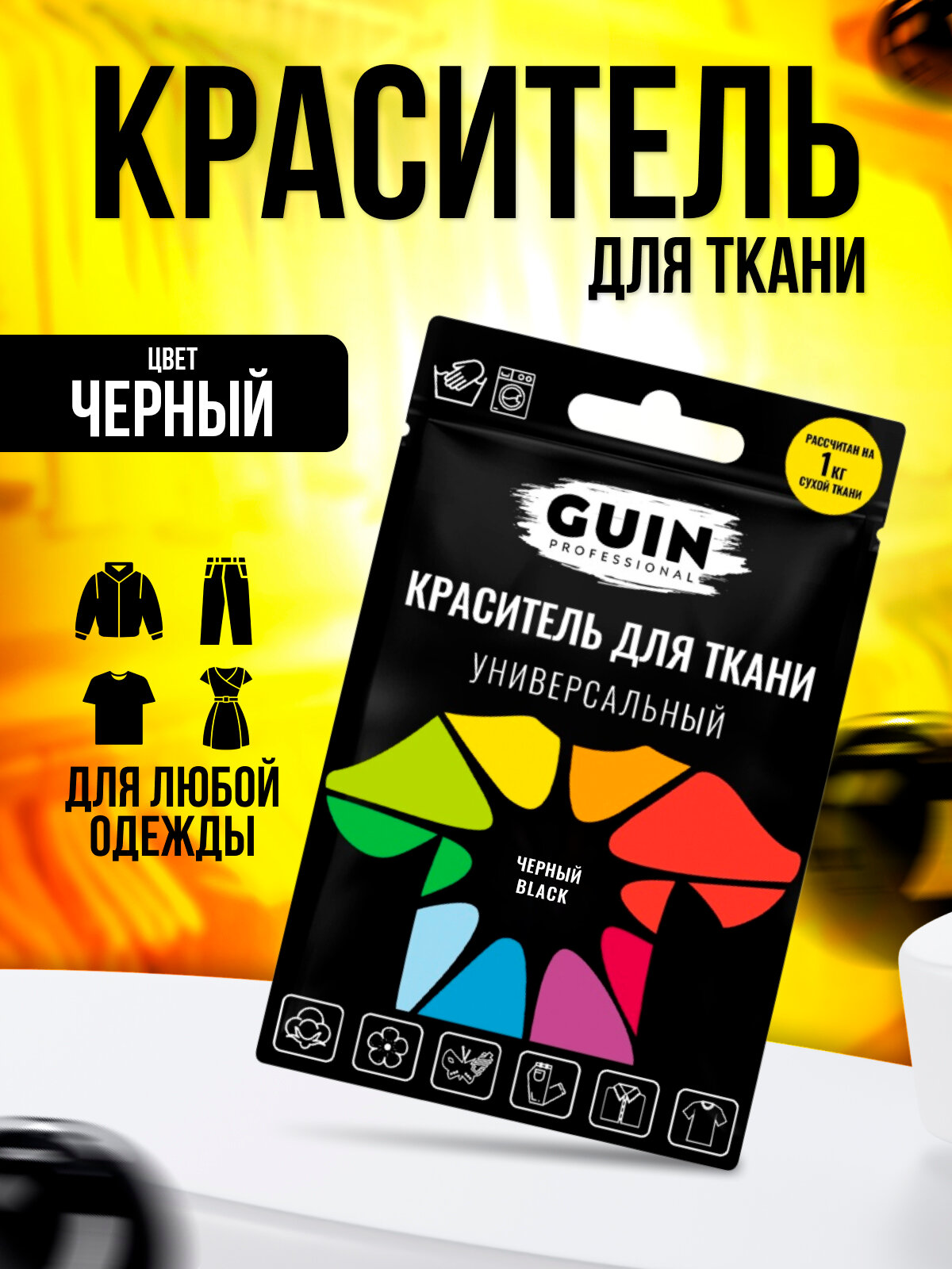 Краска для ткани черного цвета, для джинсы, хлопка и льна Guin информация: