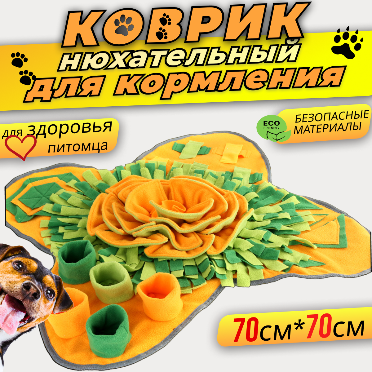 Нюхательный коврик игрушка для собак любых пород, 70 см на 70 см. информация: