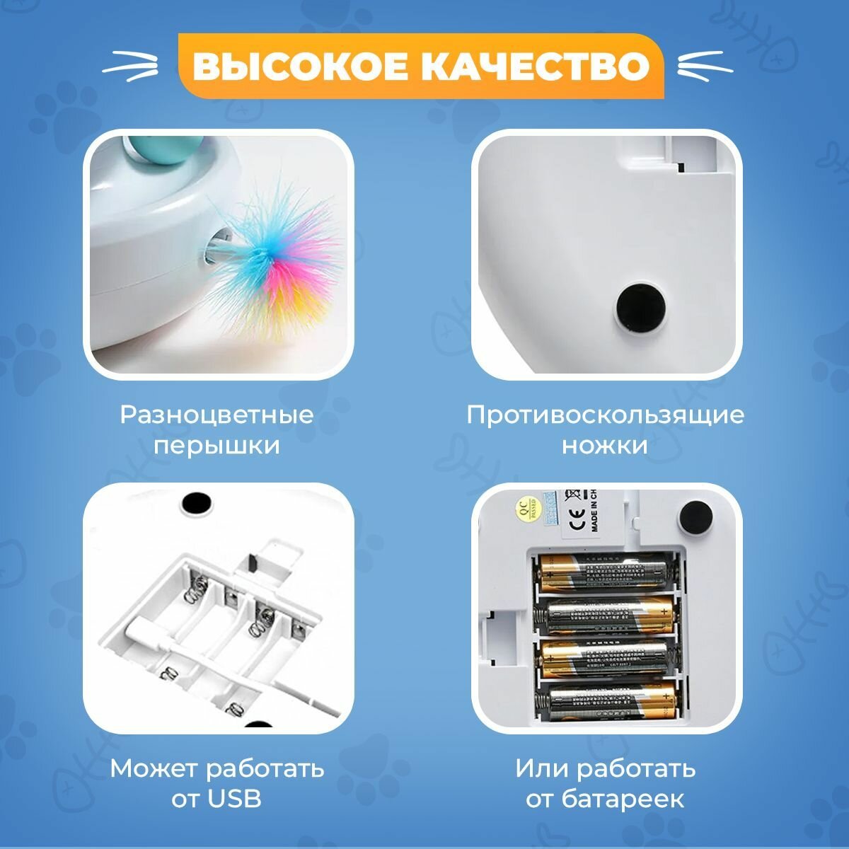 Электронная игра для котят, интерактивная игра для кошек, с разноцветными перьями и шариком, цвет белый, кошкин ДОМ информация:
