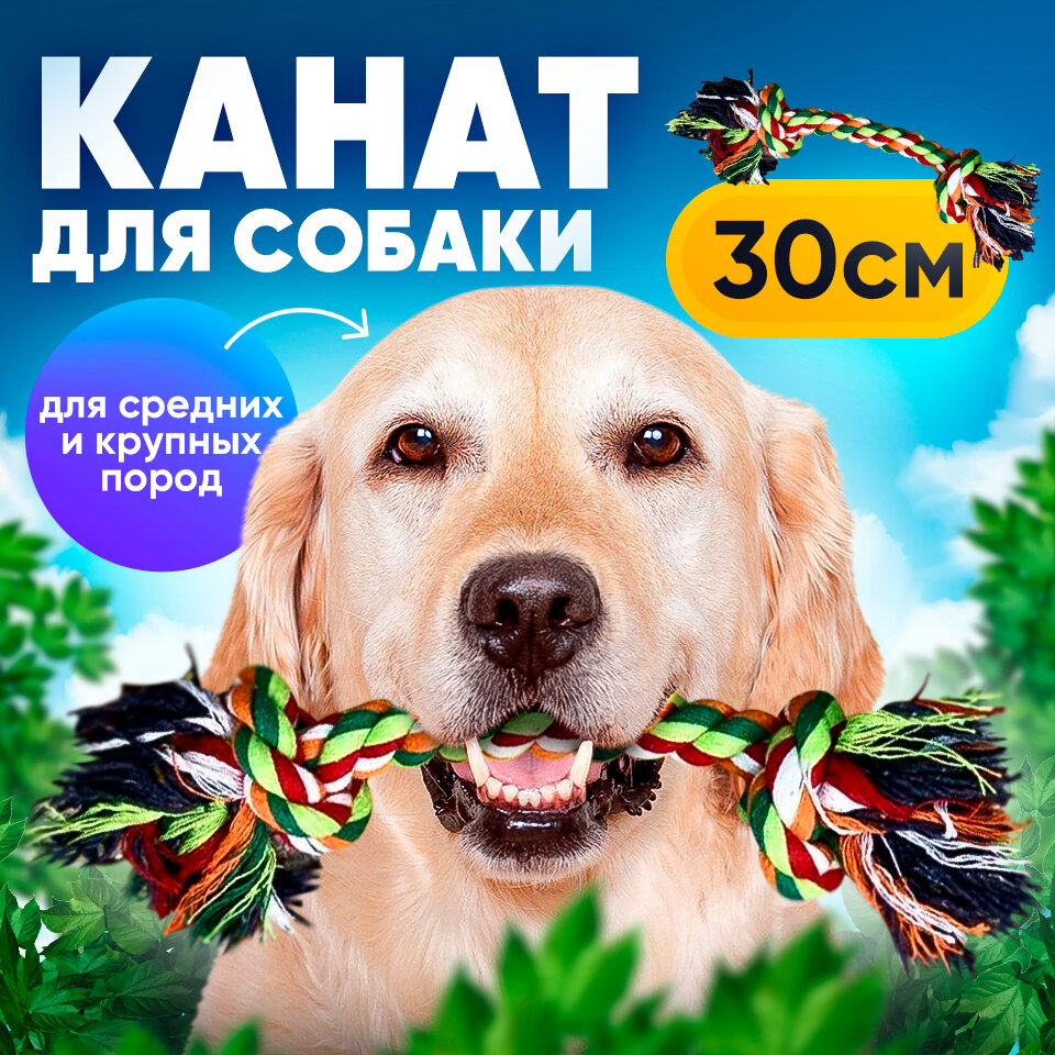 Игрушка для собак плетеный канат/2 узла, 30 см/веревка для собак средних и крупных пород 30 см информация: