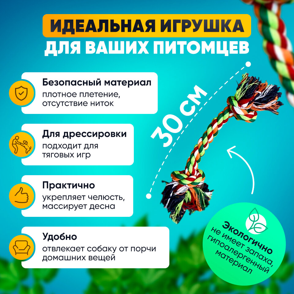 10 цен на Игрушка для собак плетеный канат/2 узла, 30 см/веревка для собак средних и крупных пород 30 см