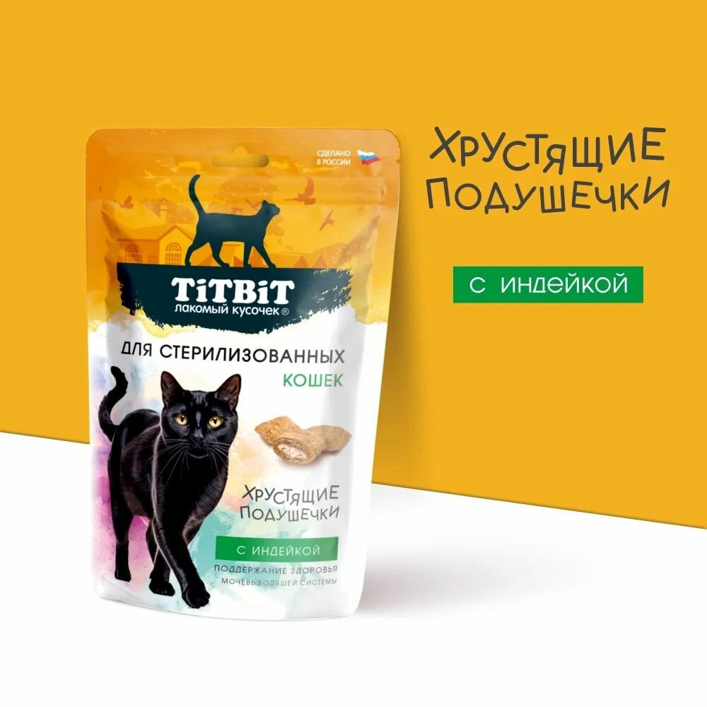Лакомство для стерилизованных кошек TiTBiT Хрустящие подушечки с индейкой 60г информация: