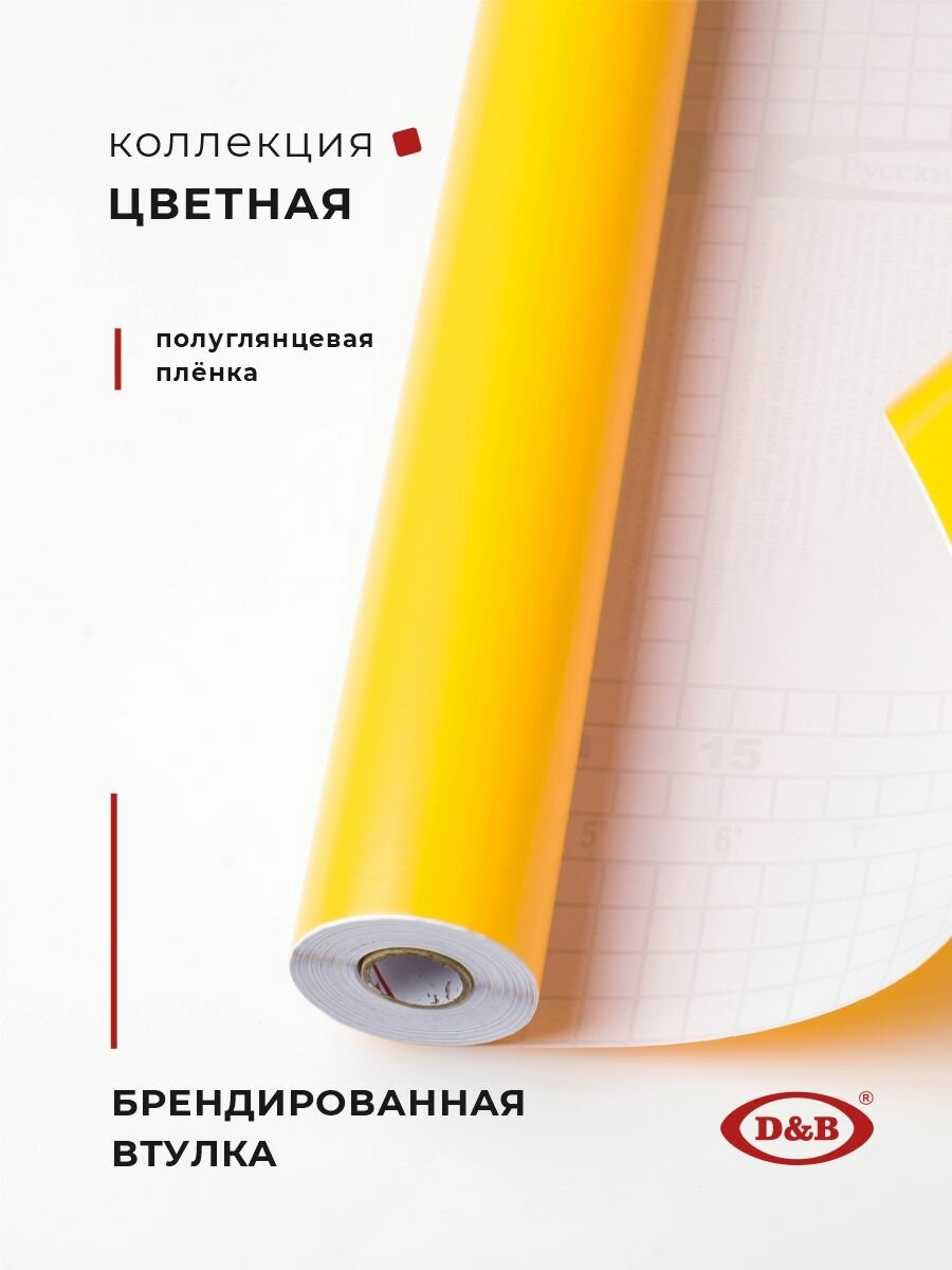 Пленка самоклеящаяся D&B ПВХ для мебели цветная ярко-желтая, 0.45*8м, плотная, толщина 0.12мм информация: