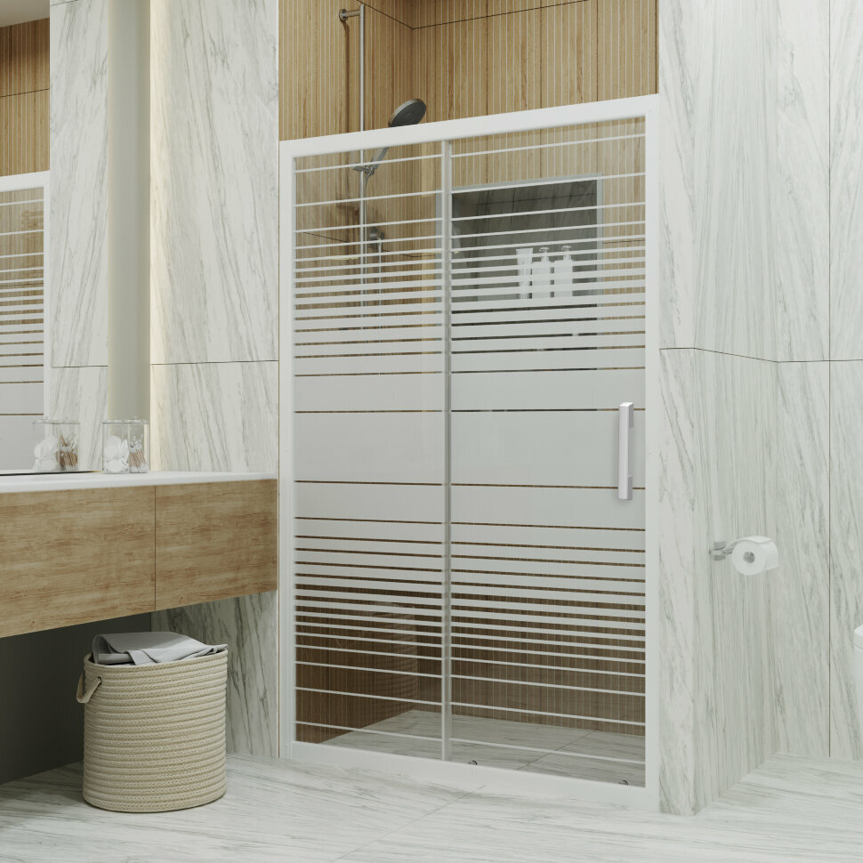 Душевая дверь, Triton, «Слайд» 100х185, цвет профиля белый, стекла рисунок - полосы, раздвижные информация: