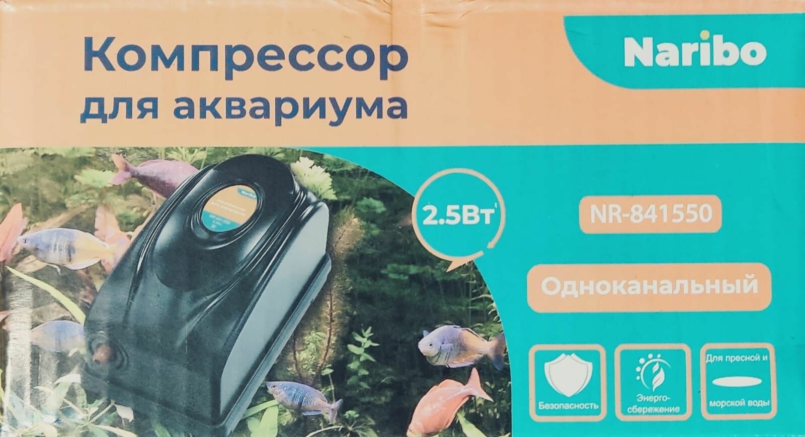 Компрессор Naribo, 2,5Вт, 2,5л/мин, для аквариума 100-150л
