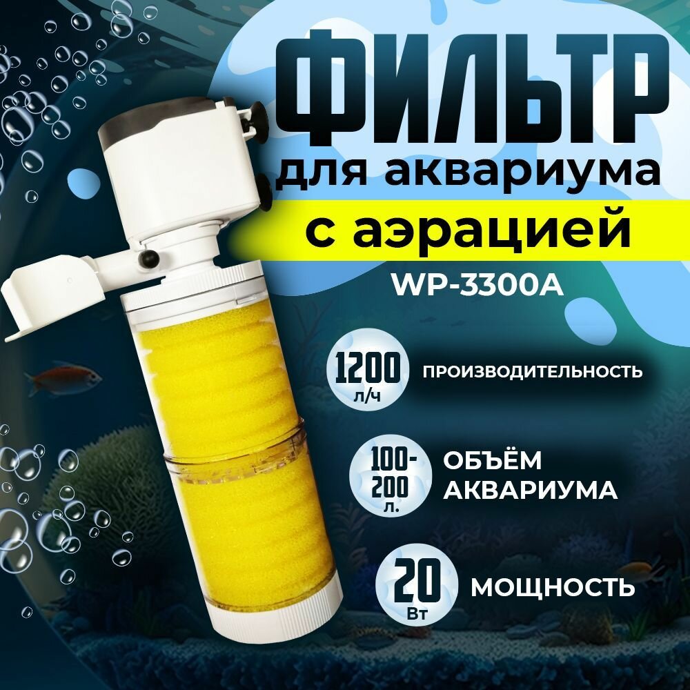 Внутренний фильтр SOBO для аквариума 100-200 литров, 20 Вт, 1200 л/ч, WP-3300A информация: