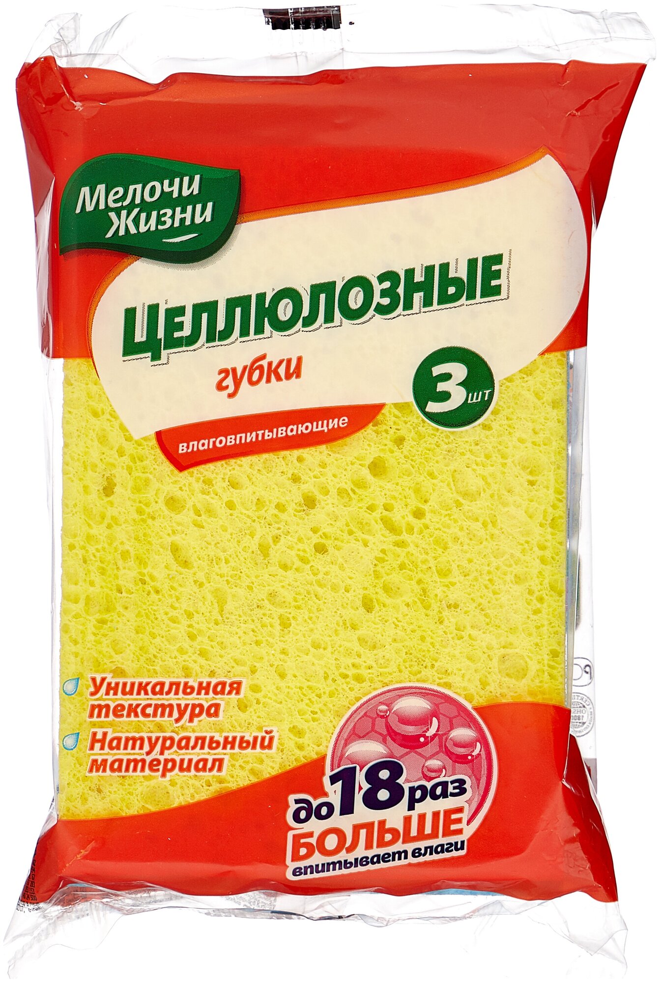 Отзывы на Губки влаговпитывающие Мелочи жизни (целлюлоза) 17 x 9,8 x 1 см, упаковка 3 шт