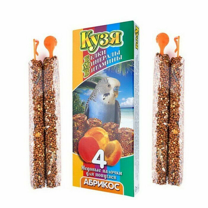 Лакомство для птиц, кузя, Палочки для попугаев, Абрикос (4 шт), 1 уп. информация: