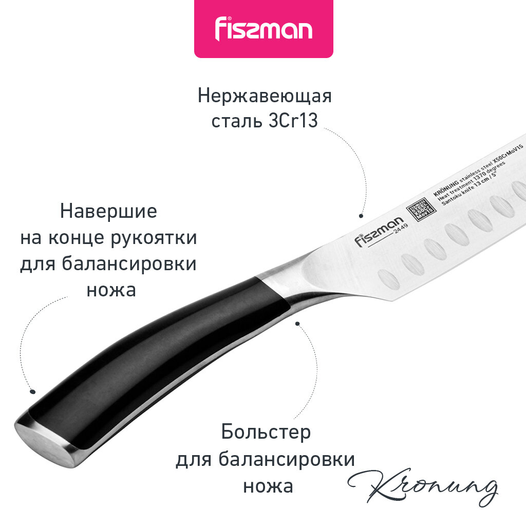 2448 FISSMAN Нож Сантоку KRONUNG 18см (X50CrMoV15 сталь) 2 754 ₽