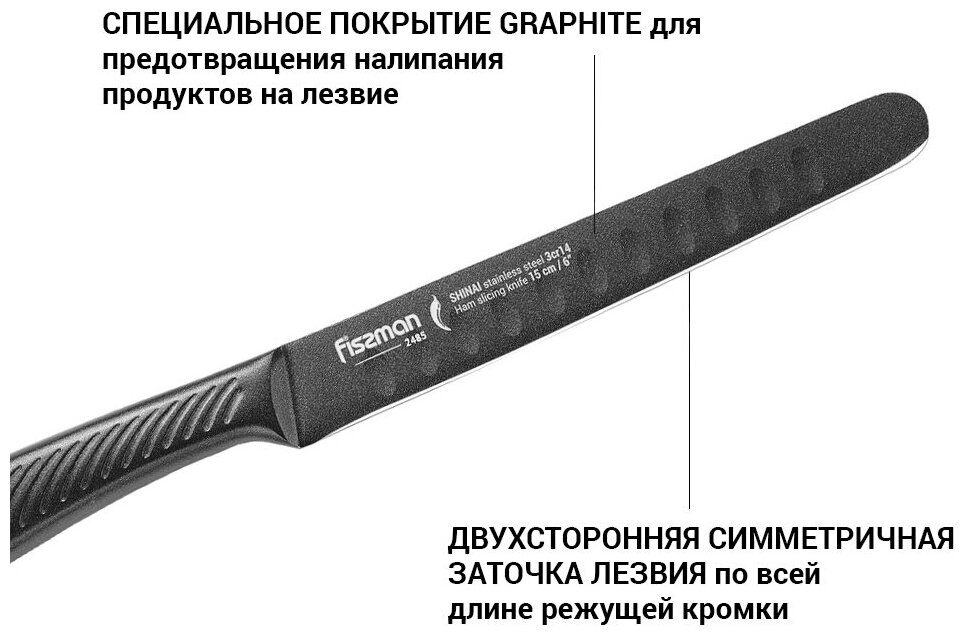 2485 FISSMAN Нож для тонкой нарезки с выточками SHINAI 15см с покрытием Graphite 15см (3Cr14 сталь) информация:
