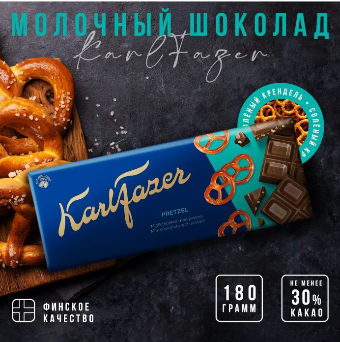 10 цен на Шоколад молочный Karl Fazer Pretzel (с хрустящим кренделем) 180 г (из Финляндии)