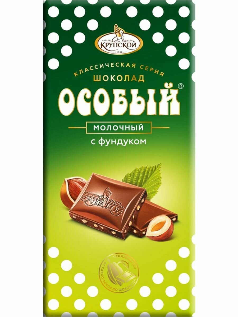 Шоколад Особый молочный с фундуком 90г/КФ Крупской информация: