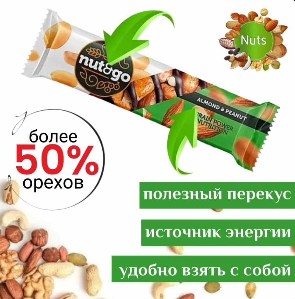 10 цен на Миндальный батончик NUT&GO с арахисовой пастой 18х36гр