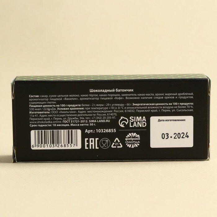 Батончик шоколадный «Ешь кофе» со вкусом кофе, 50 г. информация: