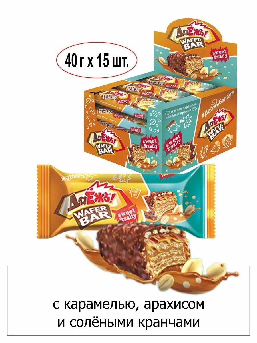 10 цен на Вафельный батончик конфеты Даежъ WAFER BAR с карамелью, арахисом и солеными кранчами, 40 г Шоубокс 15 шт