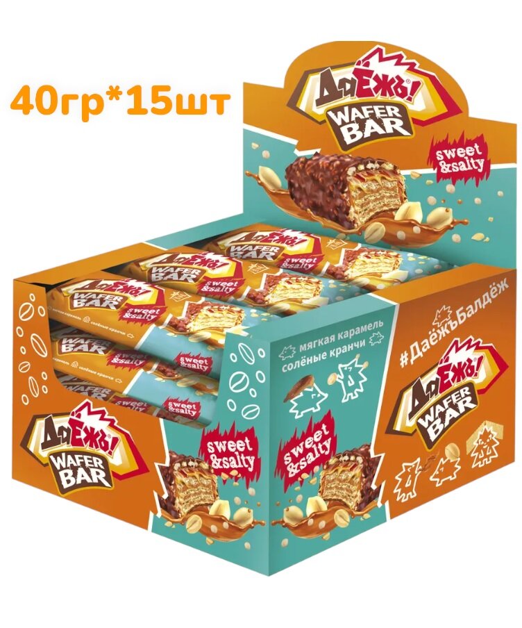 Вафельный батончик конфеты Даежъ WAFER BAR с карамелью, арахисом и солеными кранчами, 40 г Шоубокс 15 шт информация: