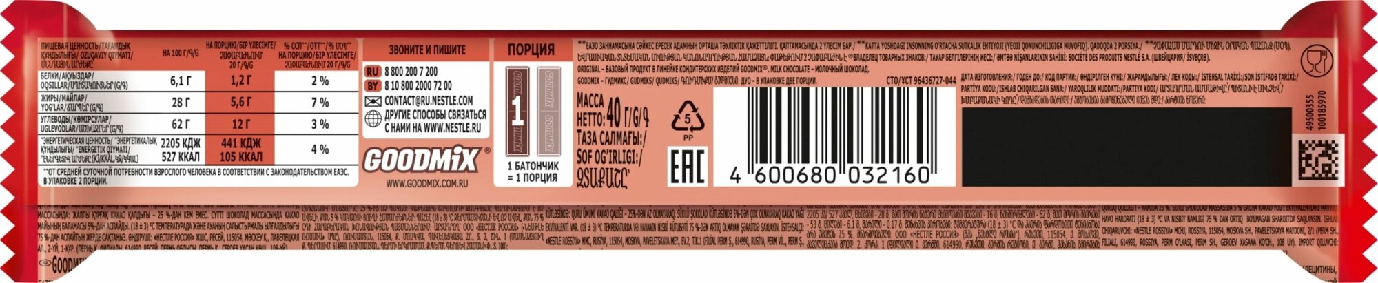 Батончик GOODMIX молочный шоколад с хрустящей вафлей 40г 5 шт информация: