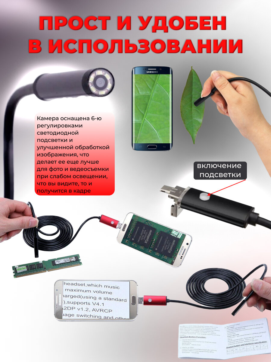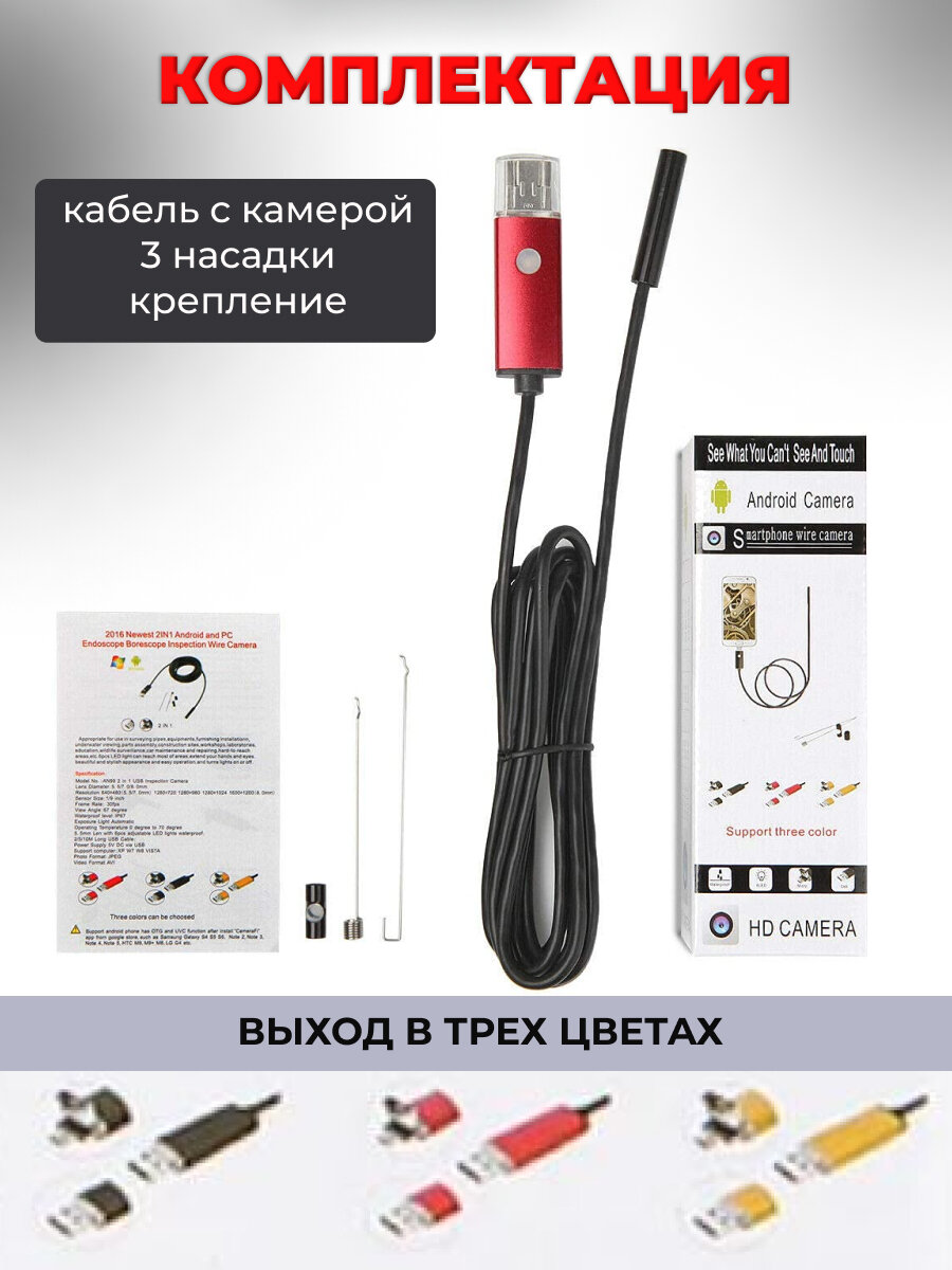 Видеоэндоскоп Гибкая камера 5 м информация: