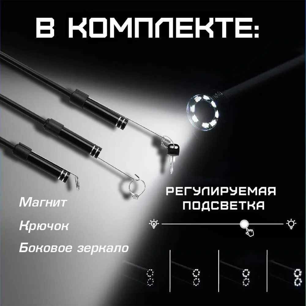 | Комплектация | Комплектация: Камера-эндоскоп – 1 шт. Маленький крючок – 1 шт. Магнит – 1 шт. Боковое крепление – 1 шт. Кабель USB/micro-USB Инструкция |