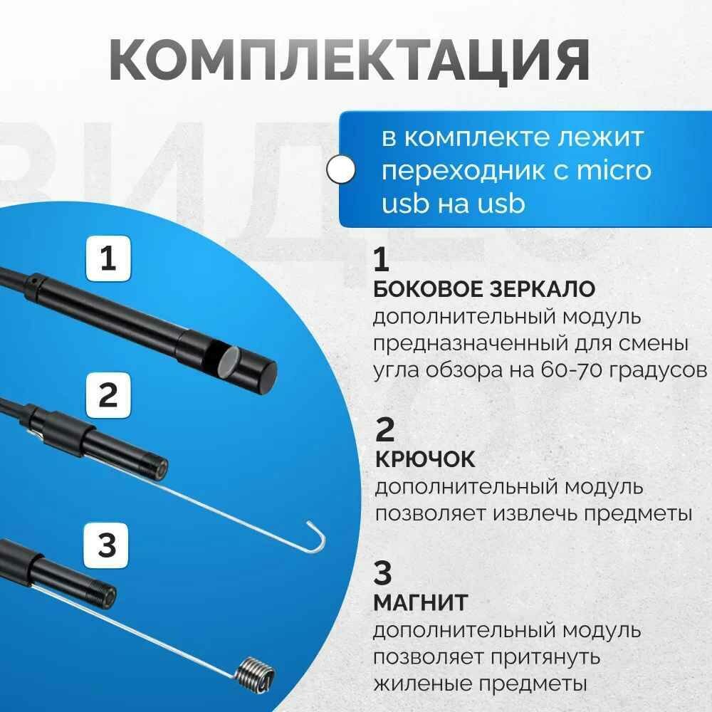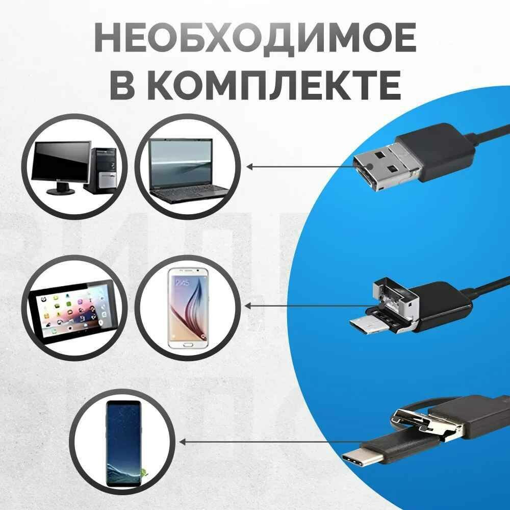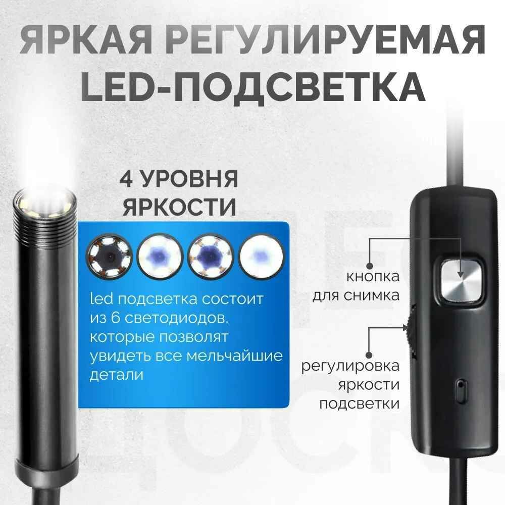 Эндоскоп для Android и ПК, USB-камера для труднодоступных мест, гибкая камера видеонаблюдения 2 м от Shark-Shop информация: