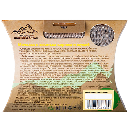 Мочалка для умывания с золотым корнем и мумие для зрелой кожи, 60 г информация:
