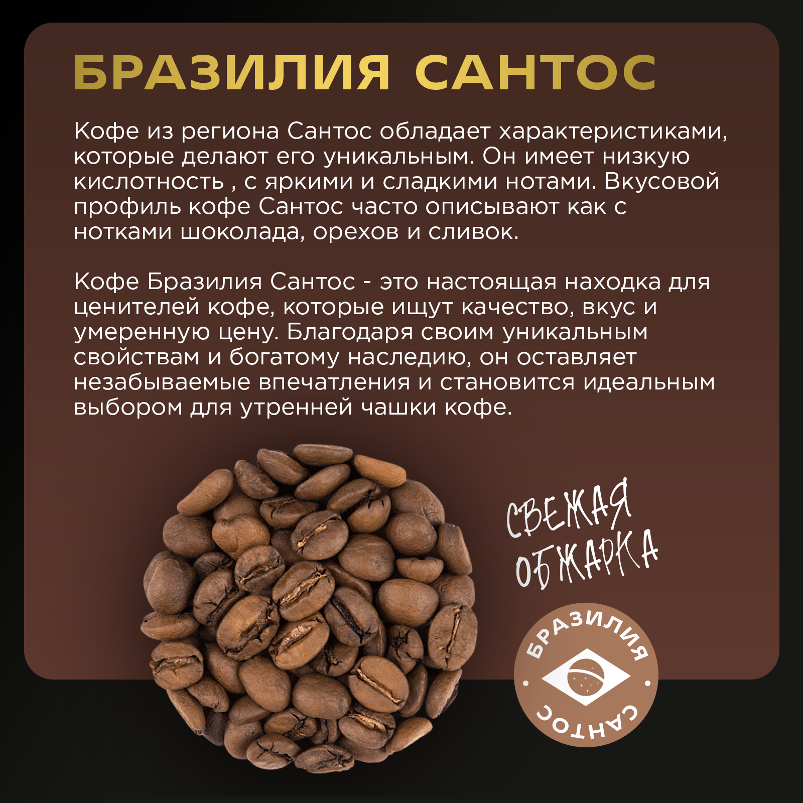 Кофе жареный в зёрнах арабика 100% Бразилия, средняя обжарка, свежеобжаренный, 1 кг информация: