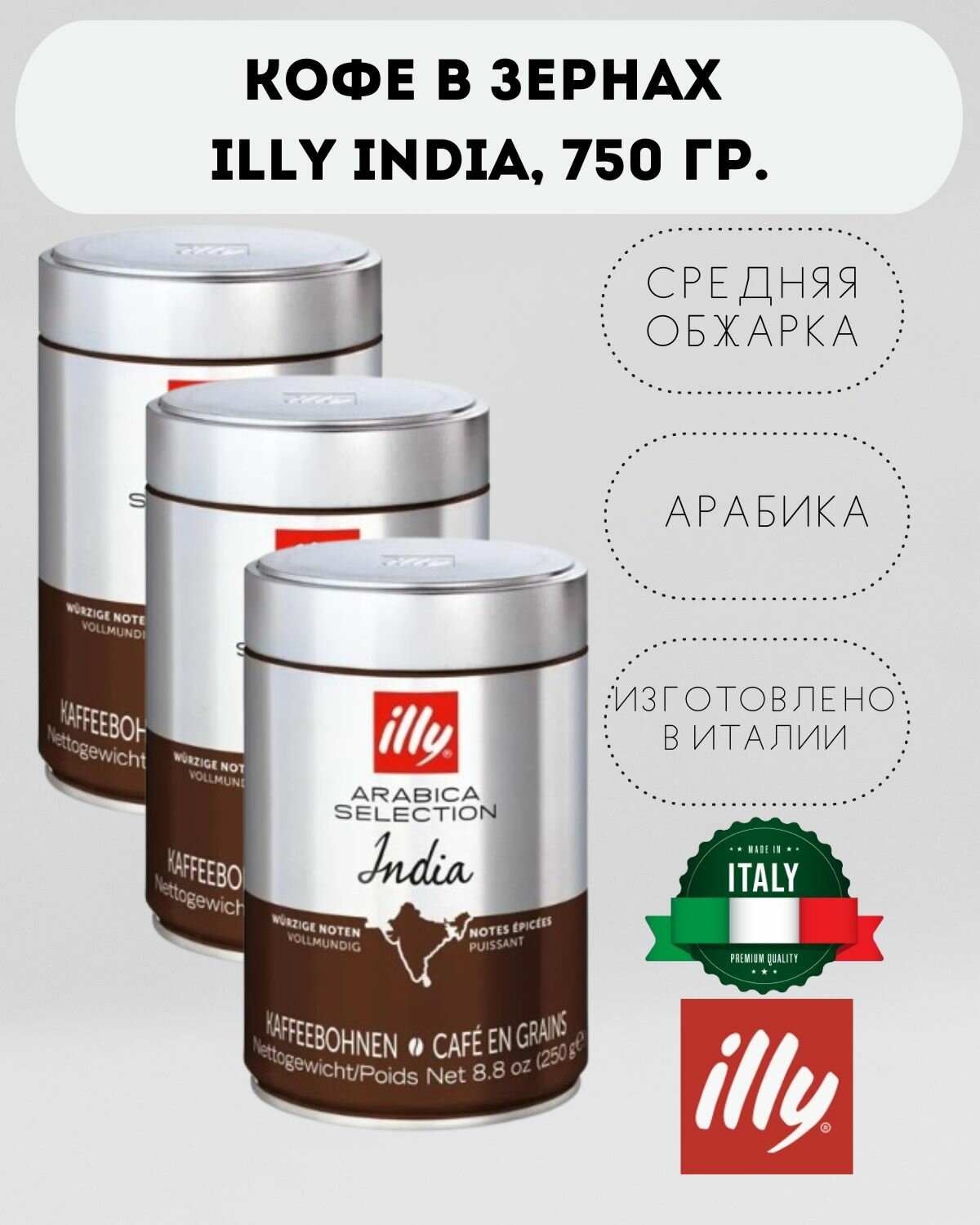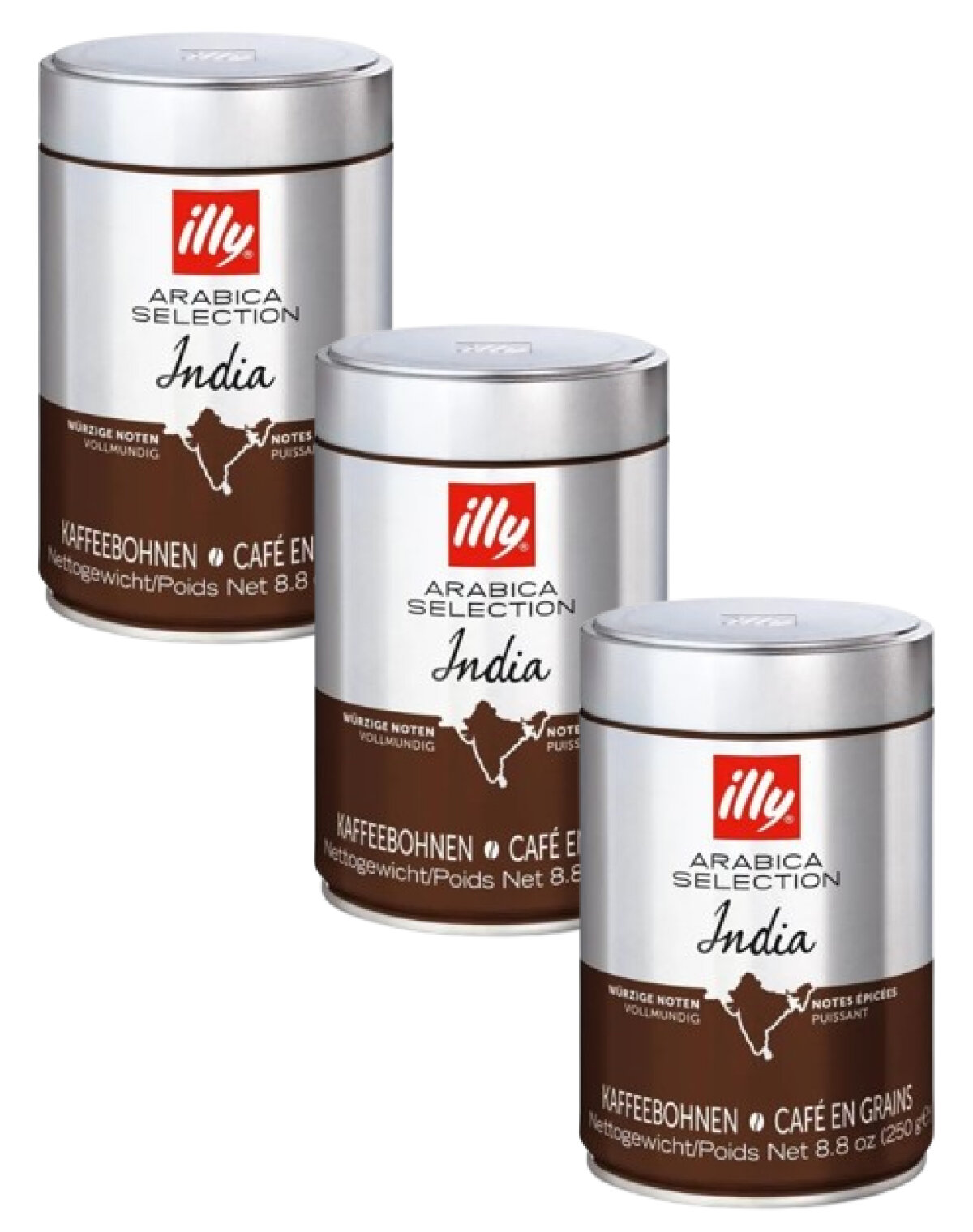 Кофе в зернах, illy India (Илли Индия), средняя обжарка, арабика, 3 штуки по 250 гр. информация:
