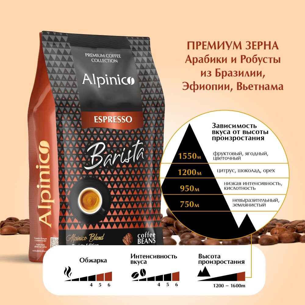 Кофе в зернах Alpinico Espresso Barista, средней обжарки, кофе в зернах 1 кг информация: