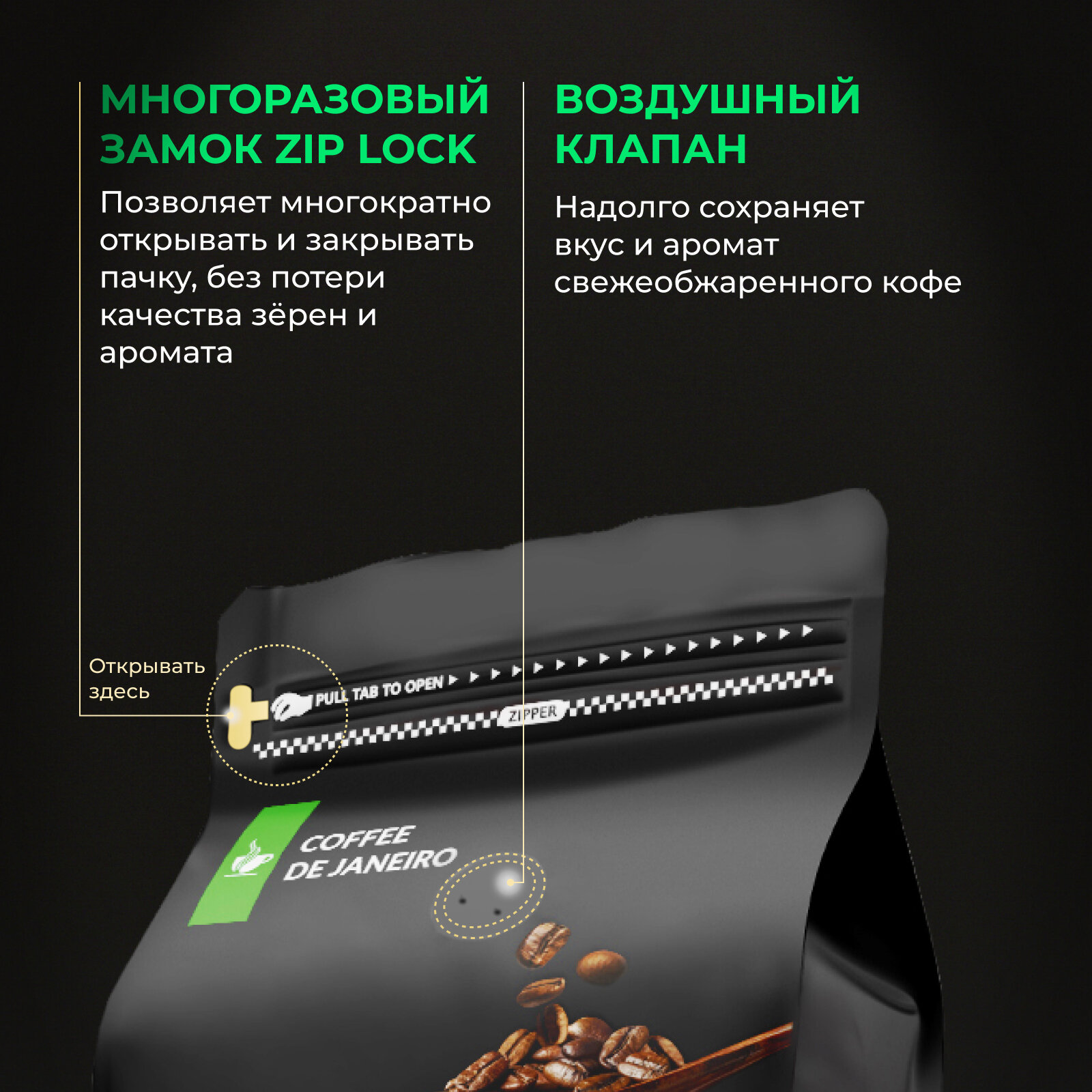 Бразильский кофе в зёрнах 1кг DE JANEIRO (ДЕ жанейро) Кофе в зёрнах 1 кг ESPRESSO ETHIOPIA 100% Арабика, в упаковке Zip-Lock / Зерновой кофе 1 кг